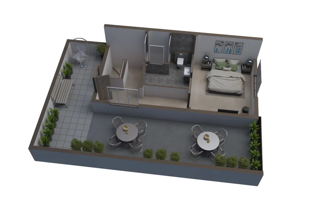 • Outdoor : 1040 Sq. Ft.